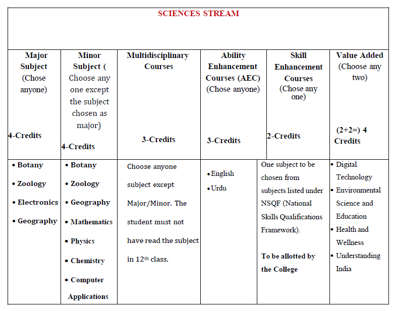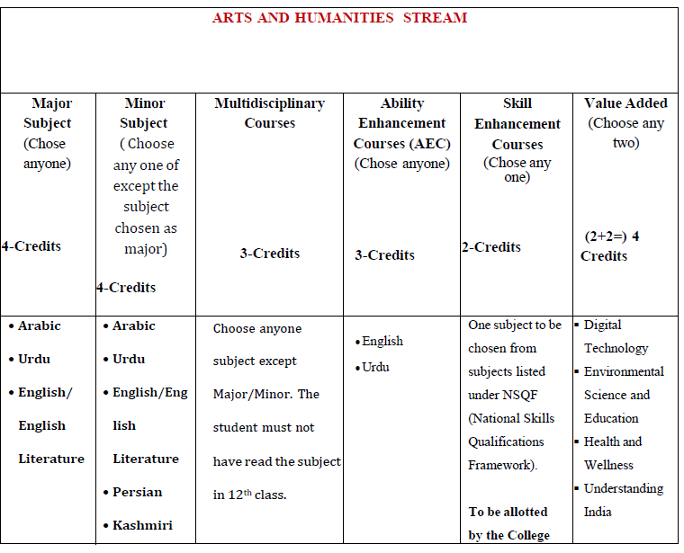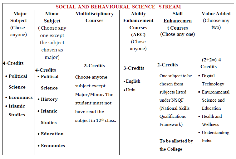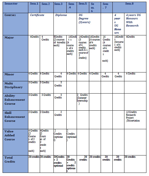 STRUCTURE AND CREDIT SYSTEM OF FOUR YEAR UNDER GRADUATE PROGRAMME